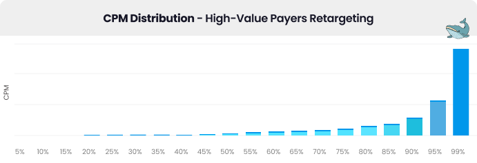 Our ML-driven bidder includes vertical-specific features, with “whale detection” built for gaming clients. This capability identifies top-LTV users (top 1%) in the bid stream and adjusts bids based on market price and audience’s projected value to ensure that our bid wins the auction.